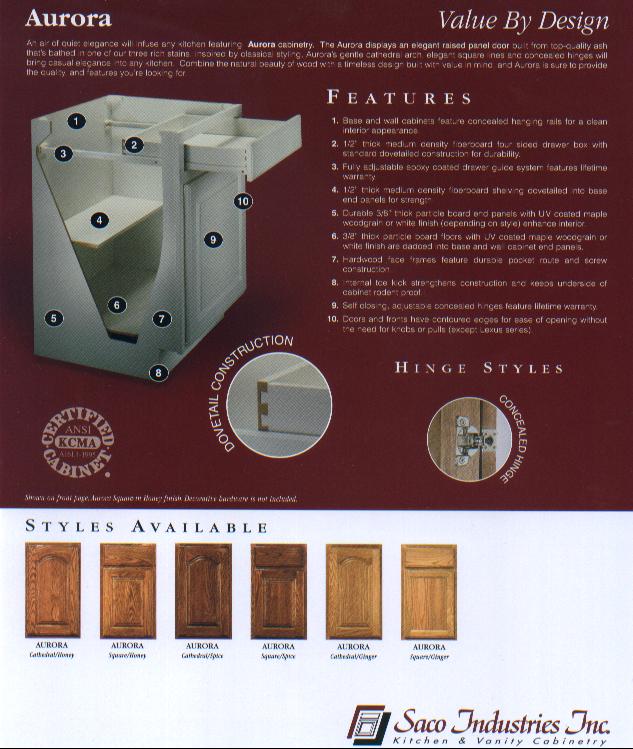 Saco - A family owned Indiana company which is one of Hood's stock cabinet companies that gives an unbeatable price, but does not sacrifice quality. Saco offers a huge variety of kitchen cabinets. Hood's is a stocking distributor for Saco. Hood's stocks in warehouse many many sizes in Cambridge, honey stain (raised panel cathedral oak) ready for immediate pickup. ABSOLUTELY UNBEATABLE PRICES ON KITCHEN CABINETS.