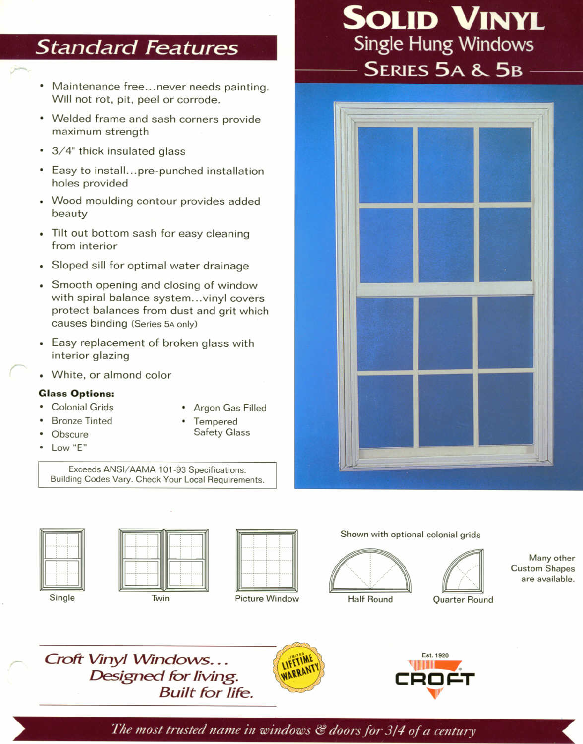 Hoods stocks vinyl windows by Croft - The most trusted name in windows and doors for 3/4 of a century.