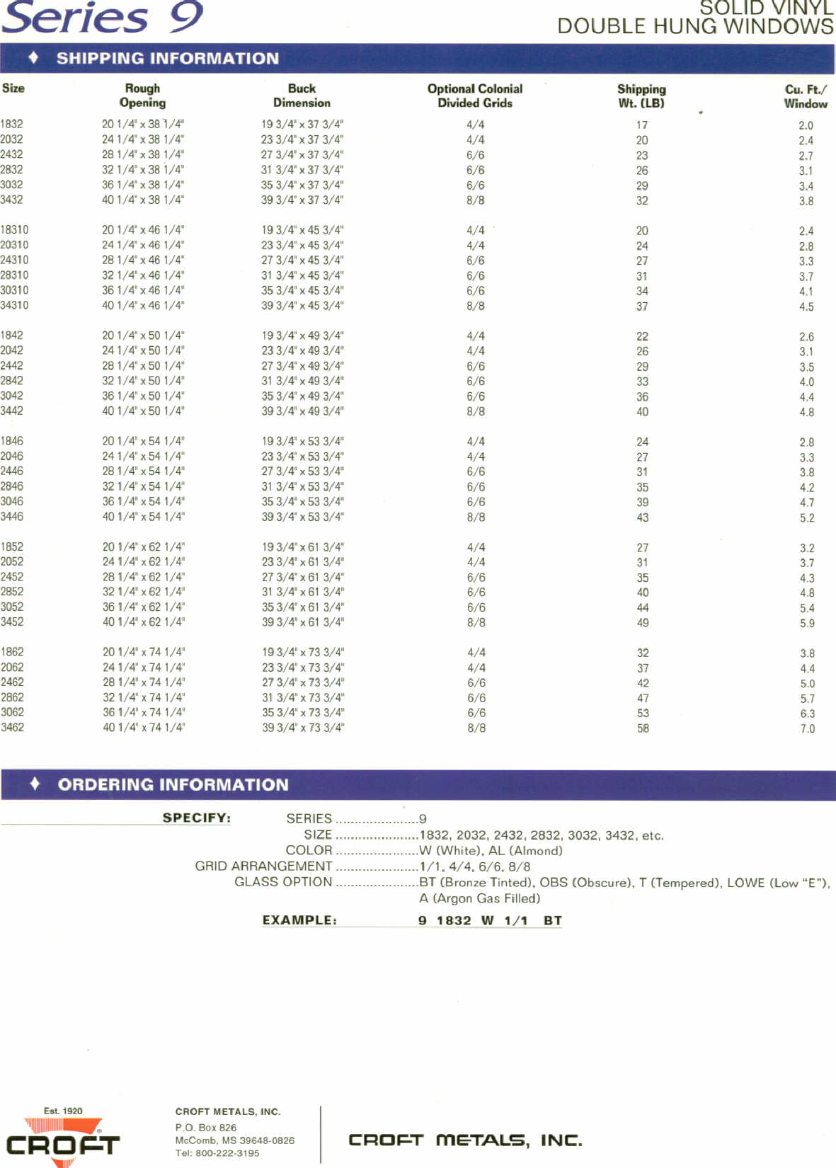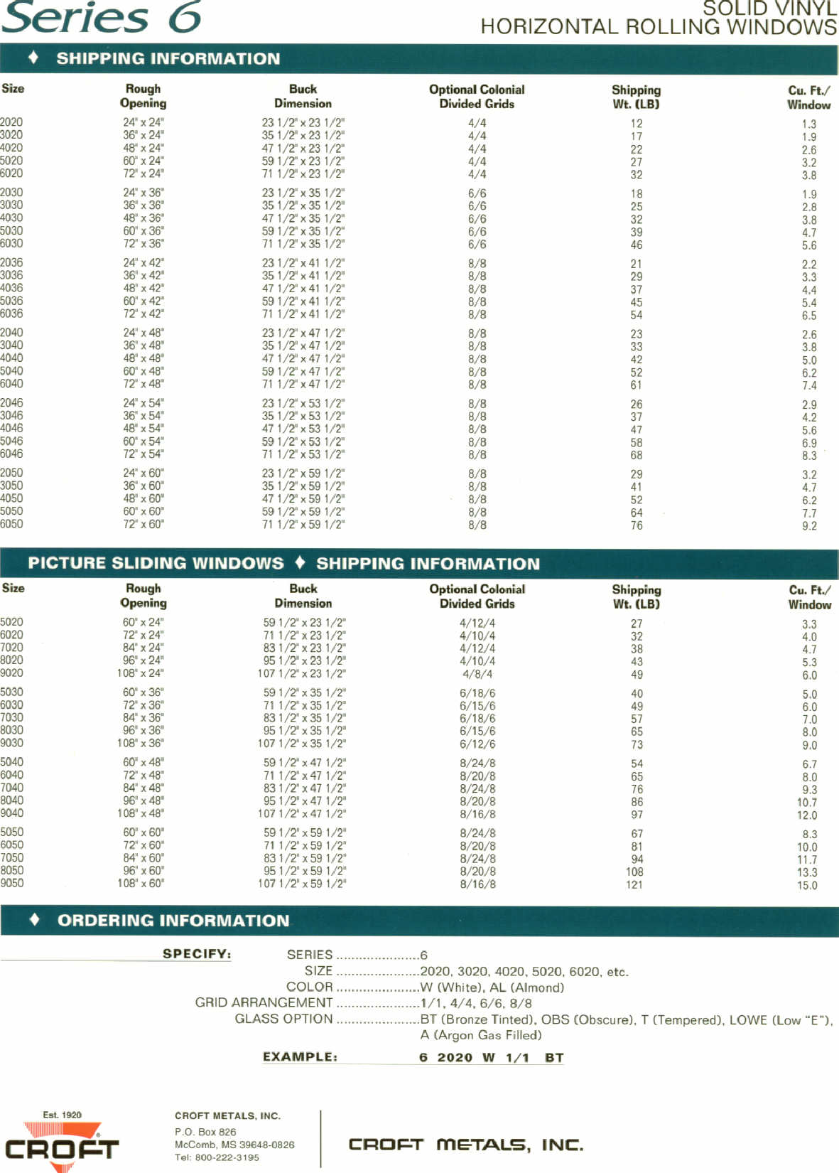 Hoods stocks aluminum windows by Croft - The most trusted name in windows and doors for 3/4 of a century.