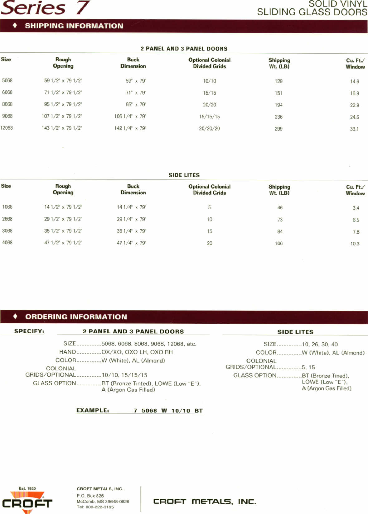 Hoods stocks vinyl doors by Croft - The most trusted name in windows and doors for 3/4 of a century.